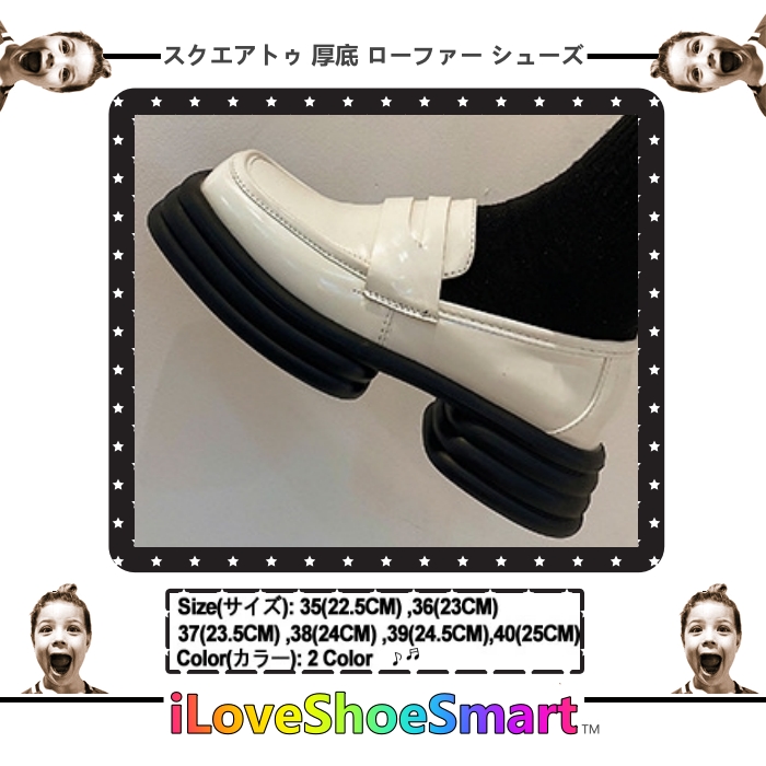 ★2COLOR★ 方形鞋頭 厚底樂福鞋 英倫風復古小皮鞋