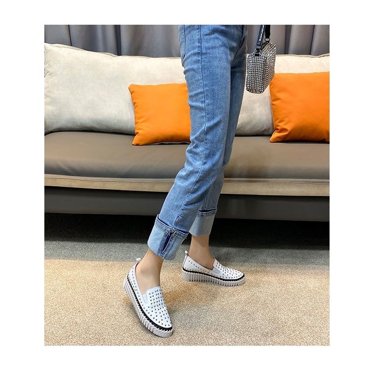 【窩釘鞋】真皮懶人樂福鞋英倫學生一腳蹬豆豆鞋 流行元素/鉚釘,鬆糕跟,內增高,鬆緊橡筋 鞋頭形狀/圓頭 鞋面材質/真皮 皮質特徵/牛皮 適用性別/女 鞋跟高度/低跟(1-3CM) 圖案/純色 適合季節/夏季,冬季,春季,秋季 顏色/白色,黑色 尺碼/35,36,37,38,39,40 鞋底材質/橡膠 內裡材質/超纖 鞋幫高度/低幫 鞋跟形狀/內增高 鞋底工藝/縫製鞋 穿著方式/套筒/套鞋 功能/按摩,增高,除臭,耐磨,減震 適用/運動徒步 鞋墊材質/二層豬皮 適用場景/日常 開口深度/中口(7-11CM) 產品類別/內增高鞋 適用年齡/成年 (實際測量取決於測量方法) 可能存在±1-2厘米的誤差。 關於腳骨肥瘦,大小可能有別,建議腳骨闊多肉 穿大一碼。 由於‎不同顯示器光暗度,照片顏色和實物可能略有不同。 ~~~~~~~~~~~~~~~~~~~~~~~~~~~~~~~~~~~~~~~~~~~~~~~~~~~ 🚀|如訂貨需時1星期左右|部份日韓地區可能需2至3星期| 🙋‍ | 如有現貨 翌日發貨 |(⁎⁍̴̛ᴗ⁍̴̛⁎)