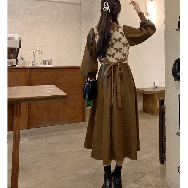 收腰顯瘦燈芯絨針織連衣裙【有現貨 1日發貨】