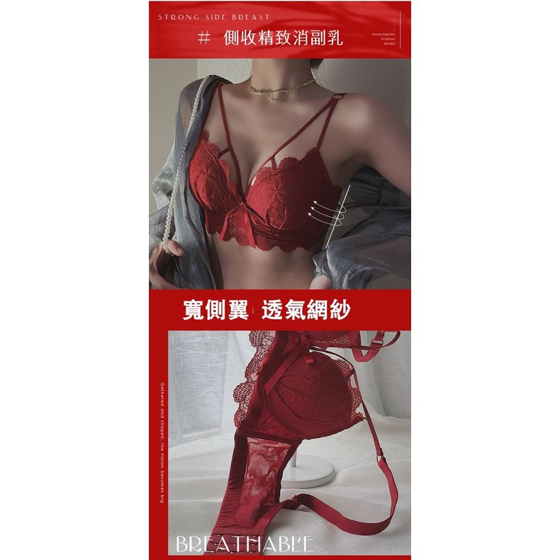 法式性感聚攏內衣套裝 聚攏收副乳 上托調整型內衣/胸圍 上下套裝型