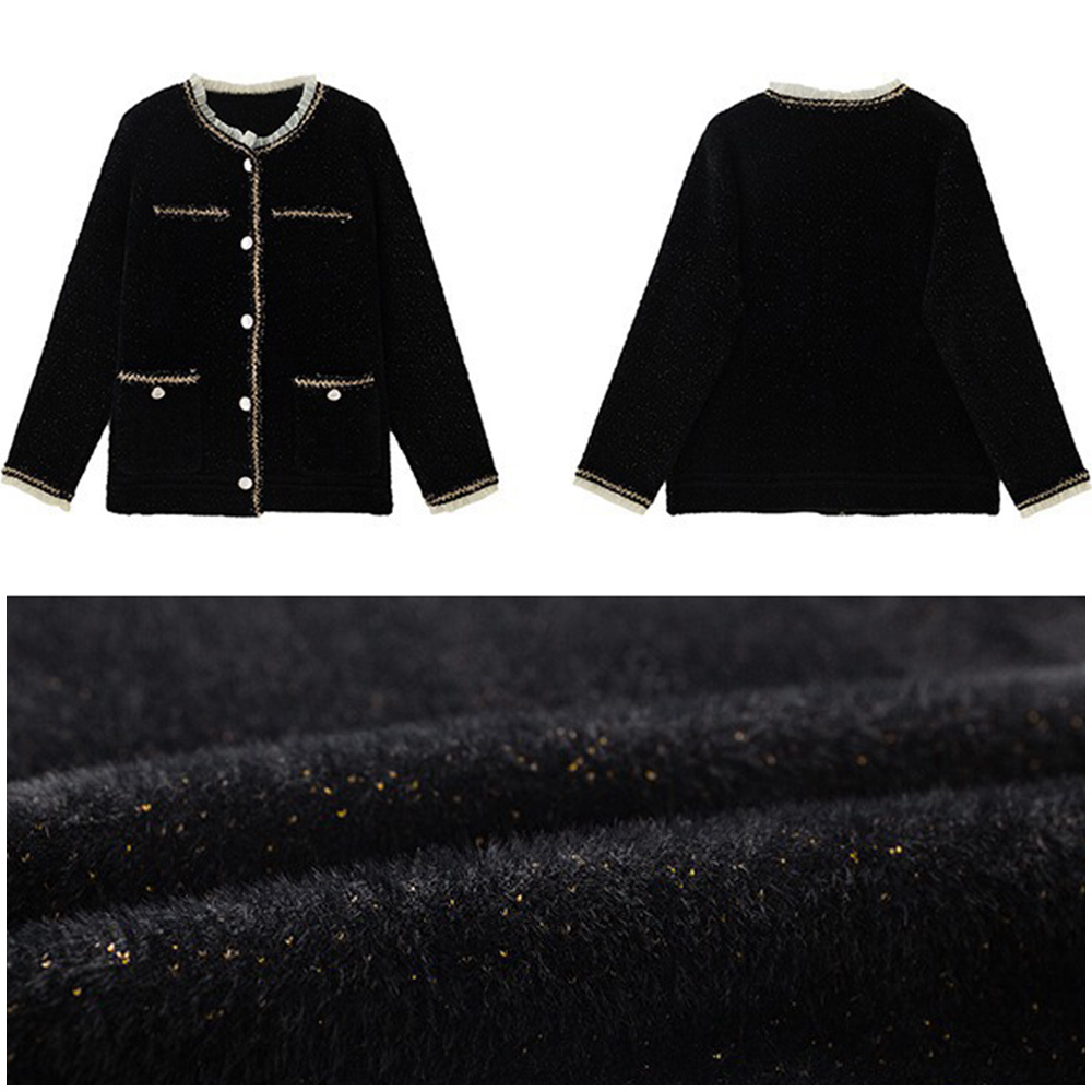 無領針織外套,水貂皮般的光滑質感,觸感極佳。